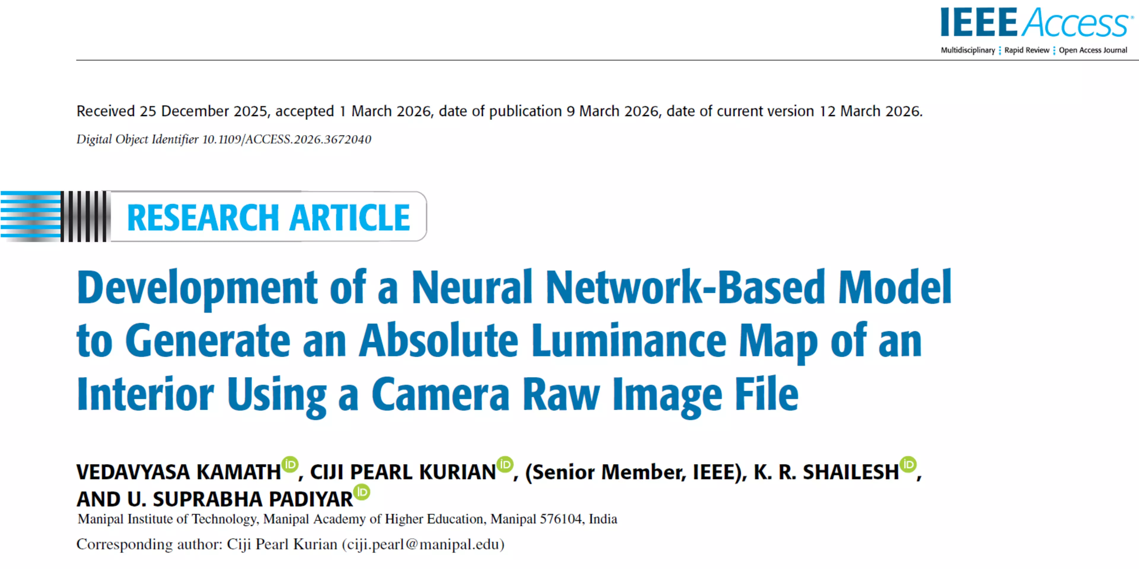 Source IEEE Access - Research Article: VEDAVYASA KAMATH , CIJI PEARL KURIAN AND U. SUPRABHA PADIYAR (2025)